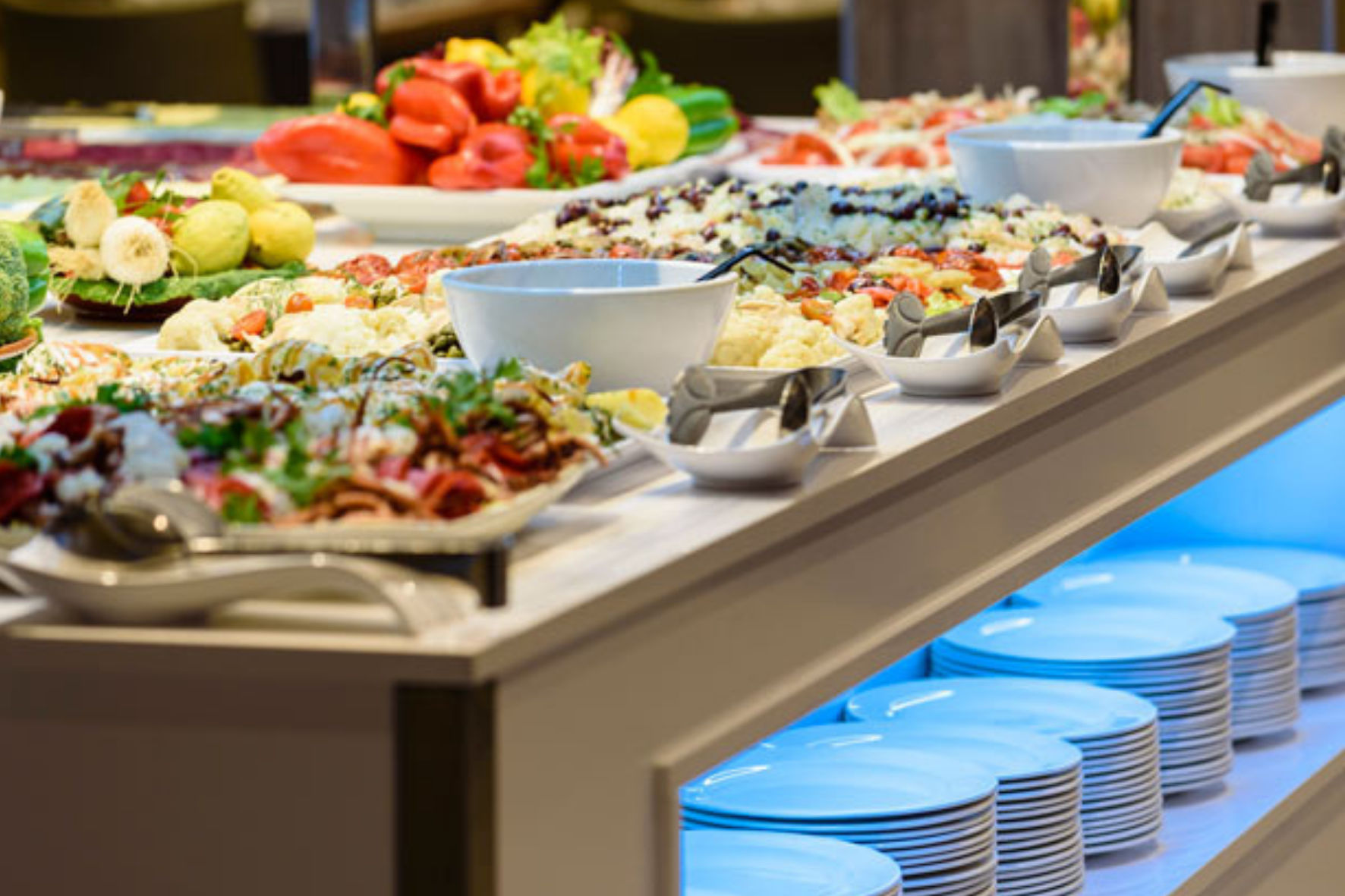 Séjour en pension complète avec eau à table. Tous les repas sont servis sous forme de buffet.